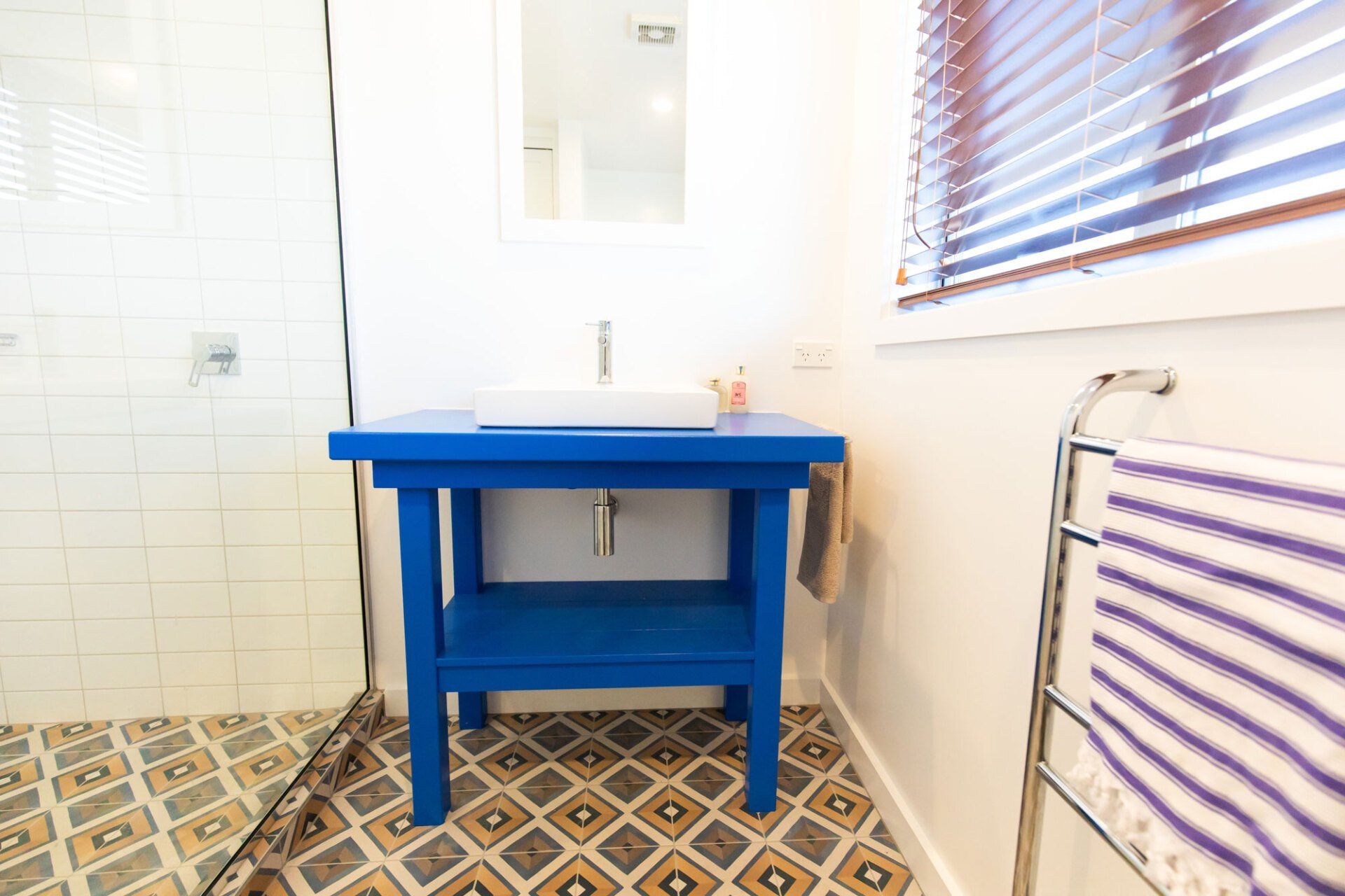 "With a growing family and a small dysfunctional existing bathroom, we decided to create a new one where our old laundry and separate toilet once were. We stole a bit of space from a neighbouring bedroom and relocated our electrical switchboard and hey presto we have a functional new bathroom, we think it looks pretty good too!"