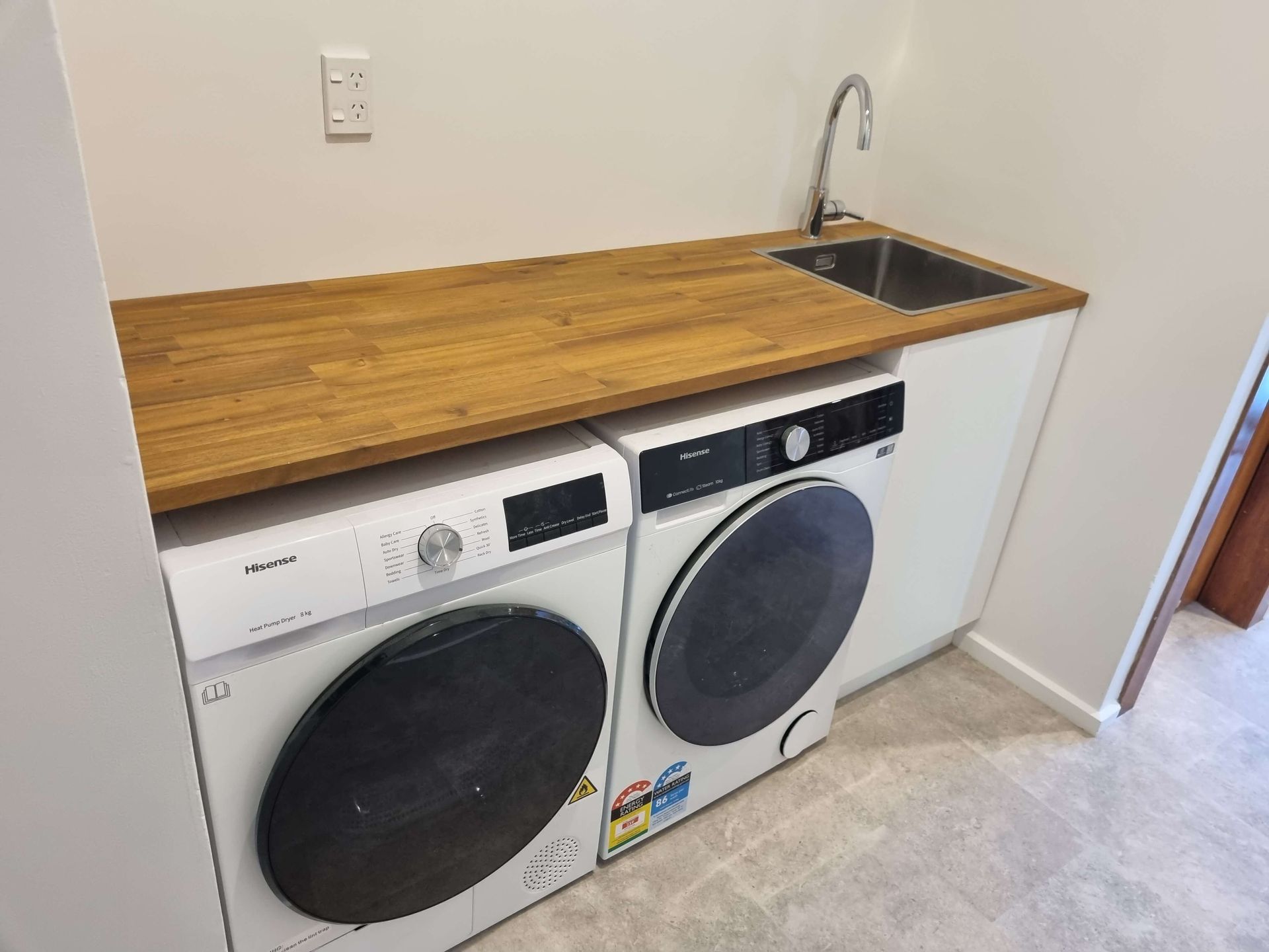 - Created an open recess beneath the benchtop to house washer and dryer.